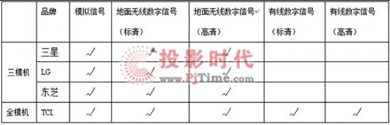 目前市面上量产的数字一体机大体可分为两种:三模式和全模式。三模式能够兼容模拟信号、地面无线(标清与高清)数字信号。全模式除了能够实现三模式的全部功能,还能兼容有线(标清与高清)数字信号。经过了解,目前我国大部分地区还是实行有线数字电视,无线数字电视仍然处于推广阶段。