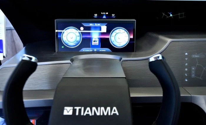 天马展示的新一代智慧座舱,将IRIS HUD、3D仪表和InvisiVue隐藏显示技术集成到座舱内,其中IRIS HUD将成像精准投影至挡风玻璃下边缘黑色区域,拥有从A柱到A柱的超宽画幅全景显示能力,让驾驶员抬头即视。其入眼亮度达到 1000nits ,虚像亮度均匀性>80%,即便在强光环境下,投影画面也能看得清楚,提高驾驶信息可读性与驾驶安全性。