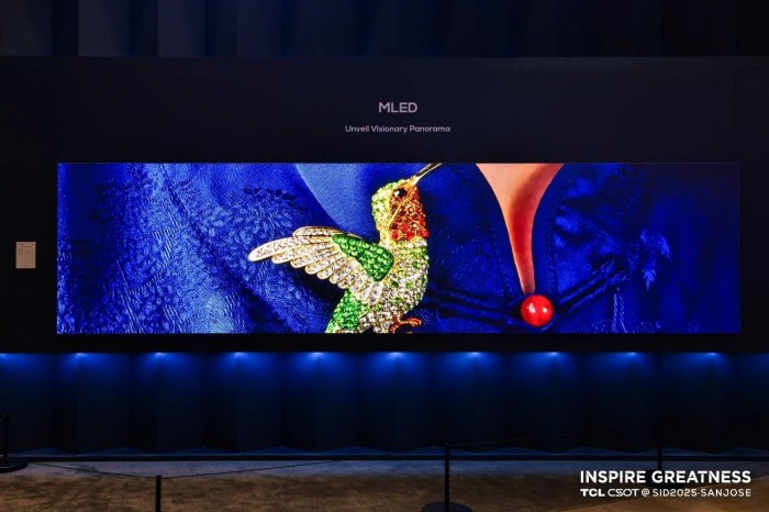 TCL华星展出全球最窄拼接双曲面联屏显示、 219"超大36:9MLED显示、全球最小硅基Micro LED显示、透明Micro LED显示、超高亮Micro LED PHUD显示、全球最高画质LCD TV、印刷OLED TV、超低功耗8:9艺术电视等新品。