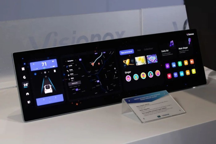 其中,18英寸可滑动OLED显示屏平时可将屏幕隐藏在车顶内,使用时将屏幕向下扩展进行显示。这两款显示屏均有高可靠性和耐用性,能够在极端环境下正常运行,范围从低至-40°C到+85°C。