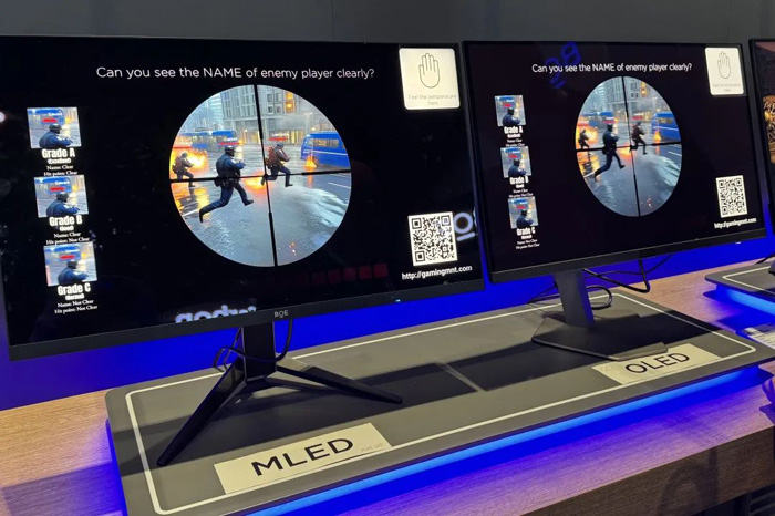 在α-MLED展区内,京东方27英寸超快响应HDR MLED电竞显示器,采用MLED背光技术,搭载300Hz高刷显示屏,解决了高速画面模糊问题,当运动速度为1440 Pixel/s时,画面依旧清晰流畅;同时,采用2304个分区的精细MLED背光,峰值亮度高达1000nit,动态对比度达百万级,显示画面细节清晰,亮暗分明,为人们带来极致的视觉体验。