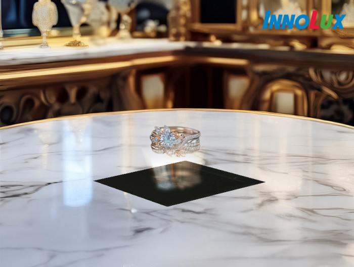 群创光电独家浮空影像技术新品“MicroLED浮空珠宝盒”,除支持非接触式手势感应技术外,亦可实时识别手势动作如拿取、旋转虚拟对象,更搭载超高亮度的MicroLED显示技术,其浮空影像亮度可达 1,500 nits 以上,以呈现优异的视觉表现。该技术带来更立体逼真、闪耀光泽的珠宝体验效果,其做为新兴的展示解决方案,更可延伸至珍稀品展示、博物馆展览、高端零售业等多元应用场域。
