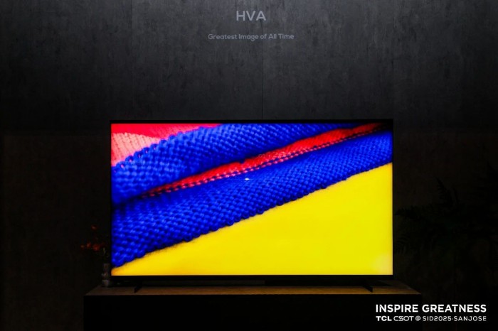 在智能电视领域,TCL华星本次重点展出了超低功耗8:9艺术电视、65英寸印刷OLED电视、98英寸全球最高画质LCD TV。85英寸8:9艺术电视搭配IGZO背板及高穿材料实现OC高穿透,结合驱动降功耗算法及背光亮度增益方案,达成欧标A级能效。