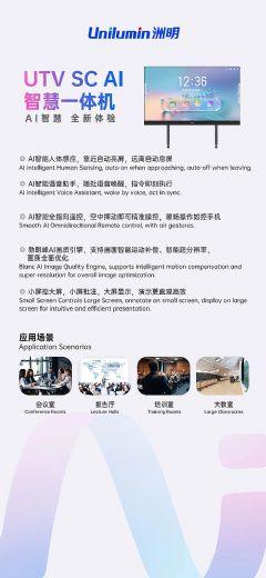 洲明五款高集成智能化LED新产品:AI智慧一体机、超级一线通(五合一)、智慧节能户外LED显示屏(含星钻Usurface V & 星钻UslimIII O)、全息隐形屏。…详情>>