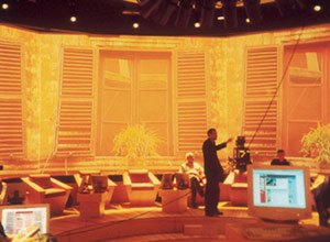 • 把图象投映在7块小屏幕无缝拼接成的环形大屏幕上,这个屏幕将环绕着Santoro节目的嘉宾,将他们的思维集中到他们被邀请来辩论的主题上,辩论的情况将被新闻媒体报道。
