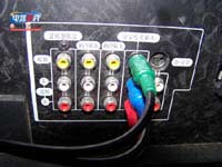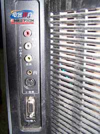 在机身右后侧有一组简便的音/视频插口,值得一提的是在这组插口下面是VGA端口,使用者可以通过这个端口与自己的个人电脑相连接,这样CHD51B5就变成了一台电脑显示器,使用51英寸的显示器切CS想必会十分过瘾吧。在机身后部是各类输入/出端口,CHD51B5的各类端口还是非常齐全的,尤其是还具有HDTV数字端口,全面兼容含顶级高清1080P在内的所有数字高清处理信号。