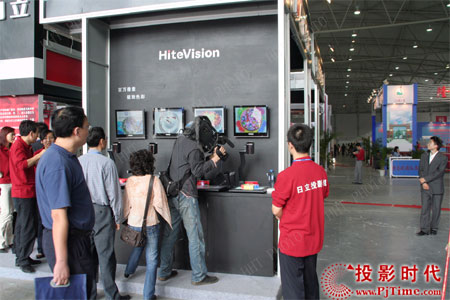 鸿合自有产品事业本部作为鸿合品牌产品的推广部门,不断的突破创新。HiteVision作为鸿合进军国际市场的新品牌,全力打造一个专业的多媒体解决方案的提供商的国际形象,HiteVision―――Hi代表更高的起点;Te代表不断的科技创新;Vision代表我们致力于多媒体行业的专业背景以及发展方向。此次展会事业部展示了旗下展台、书写屏、激光教鞭等多个产品线的几十种产品。以鸿合品牌系列产品组建了多个解决方案功能区,完全模拟用户的实际教学环境,针对不能类型,不同层面的教学进行量身设计,让参观的用户情不自禁的融入这个体验环境中。很多用户亲自操作产品后给予了很高的评价。