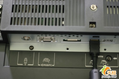 当然仅仅这些接口是绝对不够的,再往下我们可以看到还有VGA接口,射频端子(用于接有线电视),两组HDMI接口:目前市面最新推出的平板电视都几乎屏弃了DVI接口转而采用HDMI,这也是大势所趋。东芝采用双 HDMI接口更好的保证了设备的可扩展性。