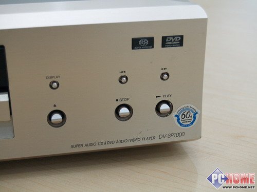 DV-SP1000的做工绝对精致,金属拉丝面板工艺非常到位,所有按键也采用金属制造,显示出与众不同的高贵。右上角的SACD和DVD-AUDIO/VEDIO标志表明了这是一台多功能的DVD播放产品,可以兼容比CD更加高档的音乐格式。