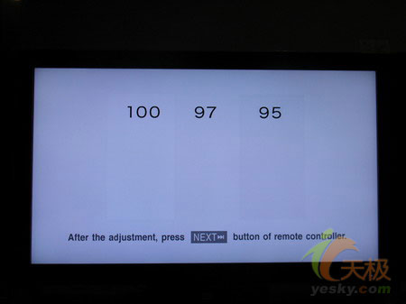 用过HiVi CAST来调整显示设备画质的用户都知道,一开始就是对高光部分色阶还原能力的测试,我们可以清楚得看到100-97-95的颜色灰度层次感十分明显。更可喜的是达到如此的效果并不需要我们人为做任何调节,应该说海尔在出厂设置上做得还是非常到位的。
