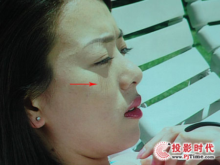 上面的图片视频格式是720P的高清视频,当然通过VGA输入后效果肯定是有明显的下降了,但我们从投影画面中可以看到人物的还是表现非常自然,画面色彩也是非常鲜艳;在下面这张图片中我们看到在播报新闻的主持人的表情非常严肃,人物的细节表现也都很到位。