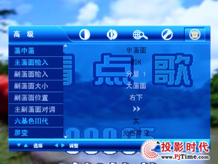 创维47L18RM-F液晶电视高级菜单主要包含了对画中画、主画面输入、副画面输入、副画面大小、副画面位置、主副画面对调、六基色III代以及屏变的调节。通过画中画的调节,可以同时收看到两个不同信号的画面显示,可以边听歌边玩游戏或者看电视节目,真正实现了一机多能的功能,也是目前大多数消费者所追求的。