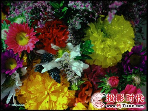 在色彩丰富的鲜花图片中优派(ViewSonic)PJ678投影机能将鲜花的各种颜色都准确的投影出来,投影画面中虽然是静态图片上的花,但看上去就跟真正的鲜花一样。