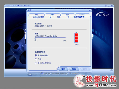 TotalMedia Theatre的设置菜单内容非常丰富。其中包括基本的DVD播放设置,音频视频设置选项等等。同时TotalMedia Theatre也有专门为笔记本电脑用户提供的移动电源管理设置,用以提高笔记本电源的实用时间;独特的区域和分级设置专门针对不同区码的DVD碟片和BD蓝光碟片的播放应用,同时影片分级设置也帮助家长管理孩子欣赏影片的范围,不符合分级管理规则的影片内容将不会被TotalMedia Theatre播放。
