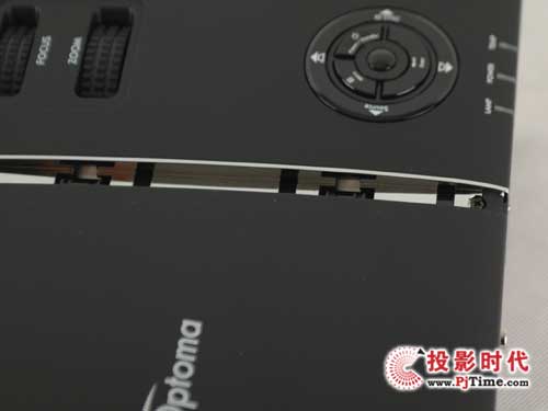 为了大家能够详细了解奥图码EP761商务投影机的详细外观,我们详细拍摄了它的外观细节。从镜头盖和遥控接收器来看,这款投影机细节地方也非常出彩,浑然一体的设计非常美观实用,不是详细观察,甚至可能会忽略掉。
