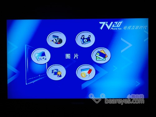 这就是长虹 LT42900FHD的多媒体播放界面,六大选项清晰直观。就算是没有接触过,也不需要很久就能适应。