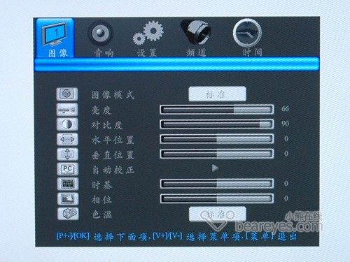 出乎小编意料的是,除了图象菜单外,其他菜单设置同样十分细致。音响、设置、频道、时间,都有很多可调控设置。