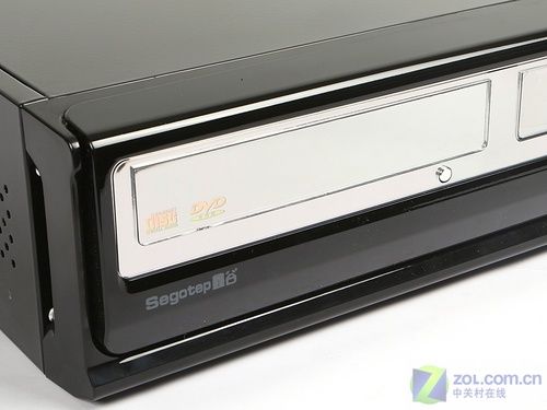 前面板简单大方,采用了钢琴烤漆工艺,摸上去手感舒适光滑。考虑到与客厅的协调一致,机箱的扩展I/O接口采用了隐藏面板设计;而光驱位则置于机箱的左侧,与I/O接口遥相呼应,简单大方中却又不显单调。可以看出,机箱顶部及两侧都留有大量的散热网眼,大大增强了其内部空气流动,改善了散热性能。