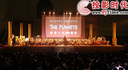 而活动过程中最令民众惊叹的,就是现场运用了10余部由台达电子、Vivitek与英国Digital Projection分别合作开发的超高亮度、高画质投影机所进行的投影。为了能创造最好的投影效果,参举厂商支持的这些投影机都有高达30000流明的亮度,并配合主题在中正纪念堂墙面上呈现巨幅比塞塔、宗教法庭、及“全球天文年”人物伽利略的一生等…经典天文发展史相关图像,让观众在视觉飨宴中接受天文洗礼。