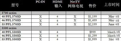 飞利浦近来推出了三个全新的Eco电视系列,4000、5000及7000系列。产品亮点是部分机型增加了对Netflix流媒体的支持、网络收音机及Blockbuster的VOD视频点播业务等,7000系列还配备有HDMI1.4接口。具体规格及上市时间见下表。