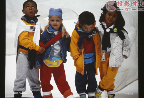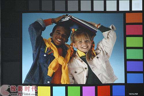 优派PJD7383i互动投影机在上两张静态图片的投影中,人物的肤色显示不够好,尤一群其是抱兔子的女孩子的脸,明显出现了偏红的迹象;一群孩子的表情倒是很自然真实,画面对比度也较不错。