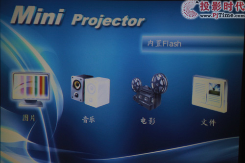 点击内存和SD卡形象图标都会出现这个纯娱乐菜单。提供了大家生活中厂常用的图片、音乐、电影、文件选项,有了爱国者PT6216多媒体便携投影的这些功能,无论是在家欣赏大片音乐,还是外出做报告演示,都能毫不费力的实现。