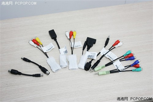 UA46C7000WF随机的一大包附件里有很多转接线,这些转接线的作用就是把为了保持超薄机身而打造的专门接口转接为各种标准端子。当然,本身体积就不大的HDMI端子就不需要转接了。