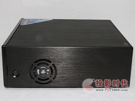 为了更好的保证机器在长时间的实用下的稳定性,开博尔K530i播放机的机身侧面设计了一个强散热风扇。由于机器支持内置硬盘设计,当长时间使用内置硬盘时所发出的高温就可通过该风扇排出。
