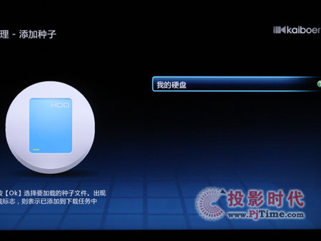 将事先准备好的种子文件存放在移动设备中,将设备连接至开博尔K530i高清播放机就可对种子进行下载并管理下载任务。