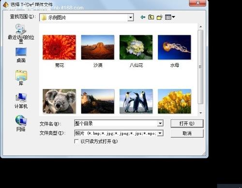 主界面依次往右第二个和第三个为3D图片和3D DVD的选项。首先我们说3D图片功能,3D图片功能和3D视频功能一样的界面。第一项是把普通的图片变成3D图片,本人打开了一个系统自带的图片,发现与普通视频转换成3D视频一样。虽然比原先的图片更具冲击力,但是和原生的3D图片相比还是欠缺一些立体感。而3D DVD视频则是把普通DVD视频自动转换成3D视频。