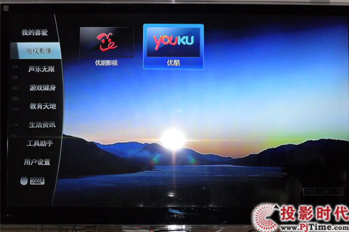 在TCL L46V8200-3D智能电视影像目录中只找到了2个在线视频应用程序,不过可以在智能应用商店找更多类似程序进行下载安装,扩展能力非凡。
