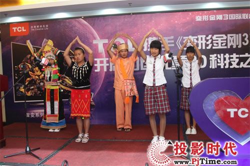 7月21日,借《变形金刚3》国内首映之机, TCL在京启动 “携手《变形金刚3》,开启山区儿童3D科技之旅”大行动。来自汶川、舟曲、盈江等地的近百名山区儿童代表齐聚京城,一同观看《变3》首映、参加3D科技课堂,与3D科技进行了一次零距离接触。