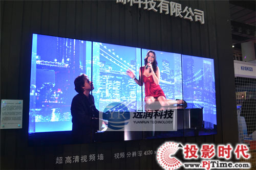 此次琶洲KTV展会,广州远润共展示了4套拼接系统,独特的异型创意拼接:7台UE46A拼接;2台ME55A拼接,3X3 9台460UX-3拼接以及 4台UE55A拼接,现场吸引了很多观众的参观和了解,其中以 46寸超窄边拼接UE46A的异型创意拼接为全场焦点,吸引不少观众,其边框仅有5.2mm,绿色环保节能且播放拥有高清的画质,为KTV行业客户提供了最理想的选择