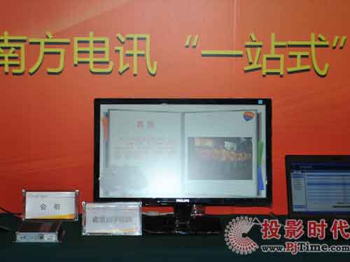 因此本次产品展示会上,南方电讯还展示了其自主产品睿景数字标牌产品。该系统是南京南方电讯有限公司集多年视讯行业集成经验,结合用户需求而开发的一套综合多媒体发布平台。值得一提的是,睿景数字标牌系统的会议指引功能,可以结合POLYCOM设备,对会议室的使用情况进行公众通知。内容包括会议时间、会议主题、会议议程、会议预定人、会议参加人等信息。