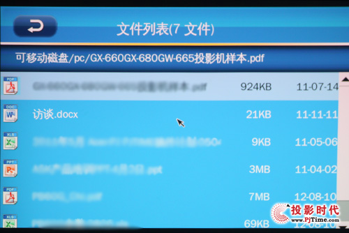 丽讯QUMI Q7支持智能文件显示,比如从电影入口进入,系统会自动检索存储设备内的视频格式文件,并在目录下显示出来,省去了用户逐盘查找的繁琐步骤,非常人性化的设计。但其所支持的视频格式依旧有限,这点并没有很好的完善。