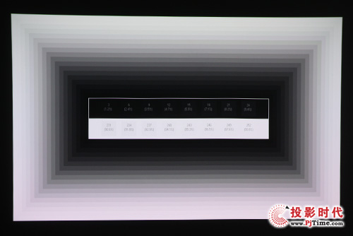 灰阶对比度测试,再配合标称1000流明的高亮下,火乐HOLATEK-A3表现非常出色,黑白块区分明显,用户肉眼即可清晰分辨开,这也使得该机的黑位表现也较突出。它也是目前,小编在评测所有LED投影机中,灰阶度表现最好的产品。