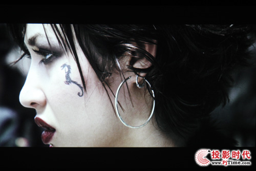 在影视测试中,小编依然采用的都是正版的蓝光高清碟。从实际智歌ES70投影出的画面来看,画质效果与高清家用投影机画面相差无几,从上面的图大家也能看出来。虽然颜色略偏冷,但全局色彩过渡自然,尤其是黑位效果出色,足以满足商教及家用用户视频及影视播放使用需求。