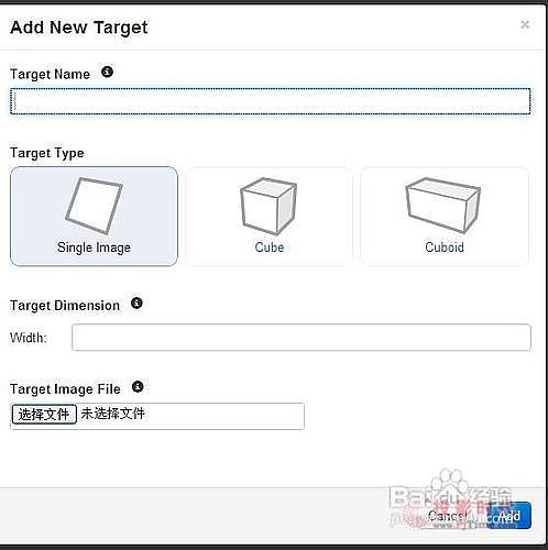 设置“Target Name”,"width"处可随意写,我这里写600,单击“选择文件”按钮,选择需要制作的识别图。