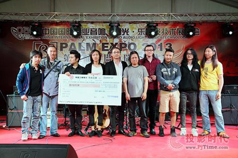 大赛评委、著名吉他乐手汶麟为乐队季军颁奖