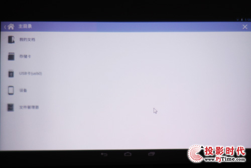 美高光电G3S微型投影机脱机演示功能相比以往微型投影机有所不同,用户只需在相对应的应用程序中打开即可,系统会自动搜索到U盘及min SD卡里面的相应文件。另外,用户想要查看U盘及min SD卡里全部内容,可进入WPS Office菜单。通过实际使用,无论是打开视频、图片,还是文档文件,整体演示流畅,无卡顿现象。