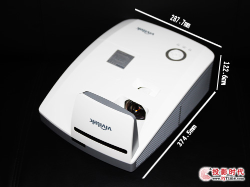 丽讯超短焦投影机D755WT整体机身设计以简单干净的白色为主色,周身圆润大方。整机“三围”为287.7(w) x 374.5(D) x 122.6 (H) mm,相比已上市的多数反射式超短焦投影机,有了不小的瘦身,不显笨重感,移动更便捷。