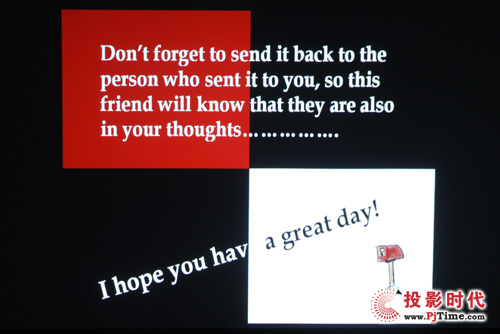 PPT文档在商务演示中的地位不言而喻,智歌短焦投影机ES80投影的画面可以清晰发现,画面颜色还原基本到位,文字清晰可辨,对比细节也不错。同时,4300流明亮度,在办公室正常环境光下都能清晰成像。