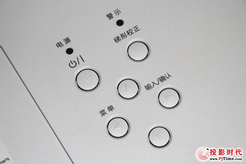 ASK C4300投影机控制面板设置在机身左下角部,采用传统的按键布局,按键不多,但实用功能键都有,配有最常用的信号源、菜单、梯形校正、确认键以及电源按键。电源指示灯以及状态指示灯很好地提示了用户投影机的工作情况。即使用户在没有遥控器的情况下,也能轻松操控投影机。