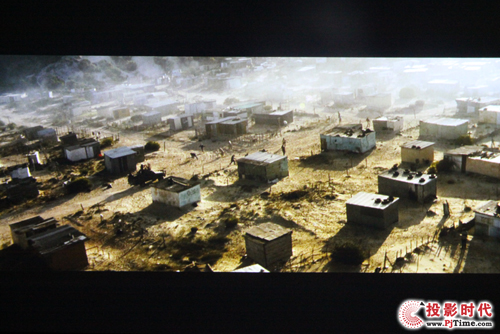 在影片测试中,小编依然采用的都是正版的蓝光高清碟。ASK C4300投影出的画面,基本满足日常办公视频演示使用需求,从上面的图大家也能看出来。但由于亮度的大幅度提升,整个影片效果虽然清晰,细节展现完美,但胶片感并不强,XGA机种所投射出来的画面颗粒感明显点,且色彩略偏淡,这也就是为什么家用投影机亮度不会太高原因所在。而由于亮度高,C4300用来观看欧美大片非常适宜,尤其是能轻松应对黑位场景较多的影片。