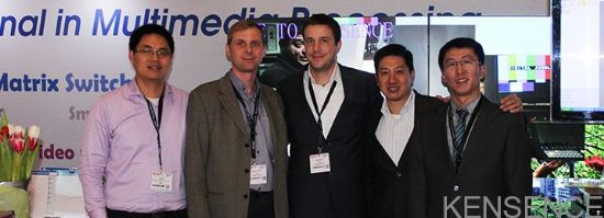 其次,在信号切换和传输方面,KENSENCE以网络、光纤及普通视频线缆等方式实现,N-Mix纯网络架构可堆迭矩阵,以其小巧的外观和灵活的配置方式得到很多参观人员的驻足。最大传输距离80km的光纤传输距离也远远超过同类产品指标。