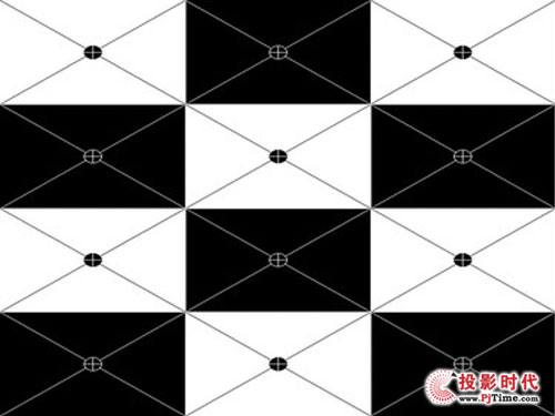 ANSI:量测ANSI C/R时,是以4 X4黑、白相间的西洋棋格状图形(Checkerboard)来量测,是“画面”对比中最严苛的量测方式。投影机的灯泡投射出来的光线经过投影机的光学系统及显示元件,光线会在光学系统中产生散射及漫射的现象,让这样的图形该黑的部份,泛着一点亮度,而全白的部份变成有一点灰,往往仅有三位数。