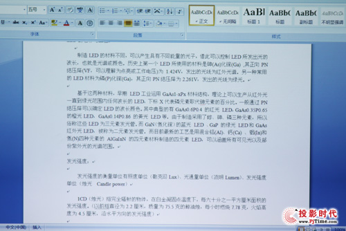 宏碁P5307WB作为教育会议型投影机,使用接触更紧密的是办公文档,而使用最多的则是文字内容,下面主要也是针对这些方面进行测试,以更进一步检测其水平。