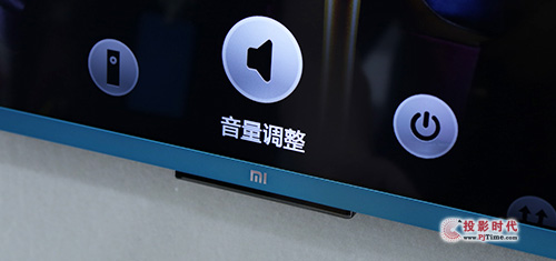 与一代电视不同,小米电视 2 抛弃了机身正面 MI logo 的触控开关功能,取而代之的是一个在机身下方的触控板,轻拍便调出快捷菜单,左右滑动可以选择包括待机、关机等选项,还可以用来找回电视遥控器。这个触控板还内置了呼吸灯、红外、蓝牙以及 WiFi 天线。