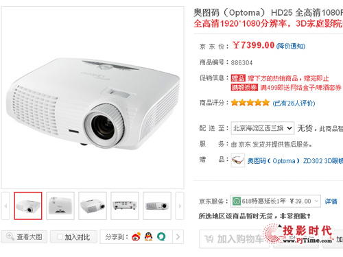 与前两款产品不同,奥图码HD25并没有加入其他特别丰富的功能,相反将更多的心思花费在了色彩表现上,而且是这三款产品中,价格最为便宜的一款。