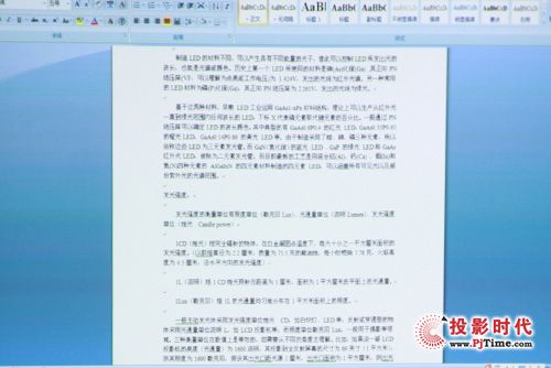 在PPT文档演示测试中,通过宏碁C205便携式LED投影机投影的画面可以清晰发现,画面颜色还原精准,文字清晰锐利,完全能满足在小型会议室中使用。